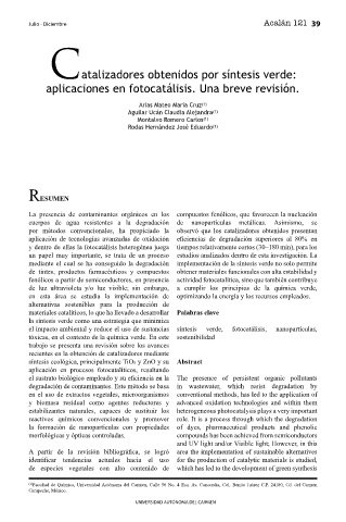 fenólicos a partir de semiconductores, en presencia actividad fotocatalítica, sino que también contribuye