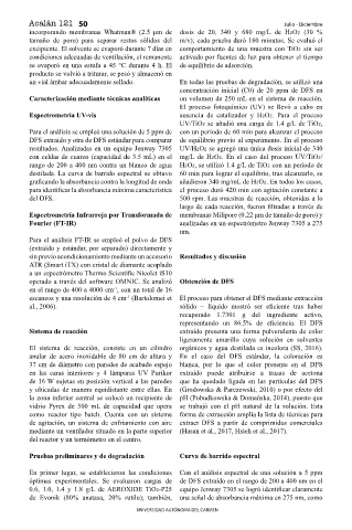 rango de 200 a 400 nm contra un blanco de agua H2O2, se utilizó 1.4 g/L de TiO2 con un periodo de
