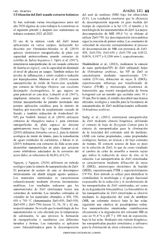 analíticas. Los resultados indicaron que los las nanopartículas de ZnO sintetizadas, así como