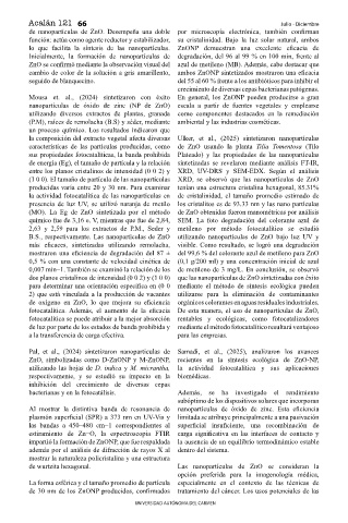fotocatalítica. Además, el aumento de la ef cacia De esta manera, el uso de nanopartículas de ZnO,