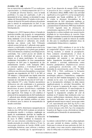 potencial de las nanopartículas de ZnO mediadas por metileno en 25 minutos bajo irradiación solar. Los