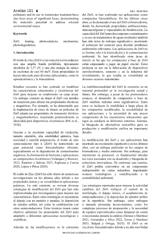 ZnO, doping, photocatalysis, mechanism, han sido áreas de enfoque signif cativo, mostrando