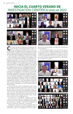perior del país y del extranjero inició el Cuarto Ve- de investigación.