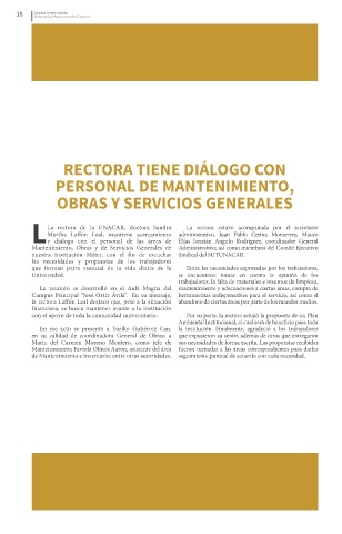 la rectora Laffón Leal destacó que, pese a la situación abandono de ciertas áreas por parte de los mandos medios.