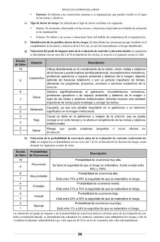 h) Valoración de la probabilidad de ocurrencia antes de la evaluación de controles (valoración ini-
