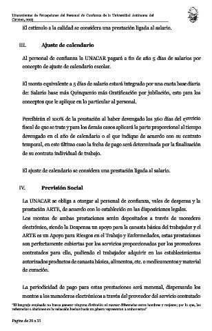 La UNACAR se obliga a otorgar al personal de confianza, vales de despensa y la