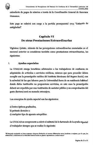 La UNACAR otorga beneficios adicionales a los trabajadores de confianza en