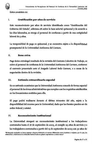 cubre al personal de confianza de la Universidad Autónoma del Carmen, conforme
