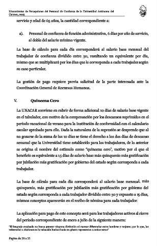 La UNACAR conviene en cubrir de forma adicional 10 días de salario base vigente