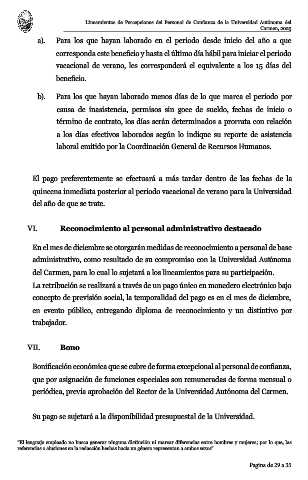 Lineamientos de Percepciones del Personal de Confianza de la Universidad Autónoma del