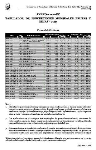 1. El total de las percepciones brutas y percepciones netas pueden variar a lo descrito en este tabulador