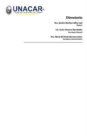 Directorio Dra. Sandra Martha Laffon Leal Rectora Lic. Javier Zamora Hernández Secretario General Dra. María del Rocío Barreto Castro Secretaria Administrativa