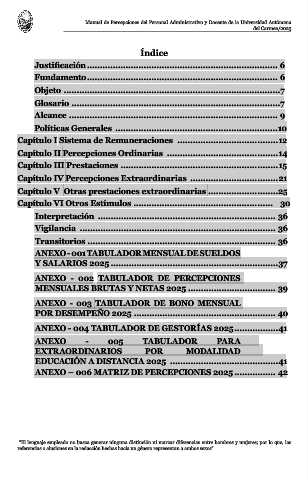 Manual de Percepciones del Personal Administrativo y Docente de la Universidad Autónoma