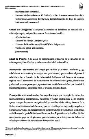Manual de Percepciones del Personal Administrativo y Docente de la Universidad Autónoma