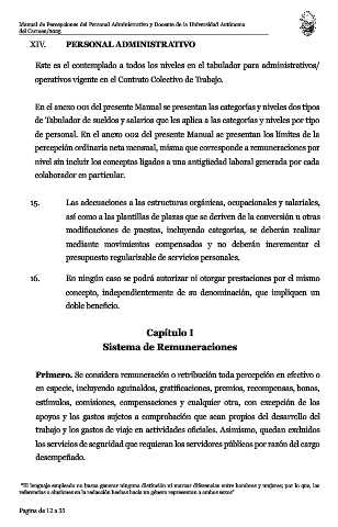 Manual de Percepciones del Personal Administrativo y Docente de la Universidad Autónoma