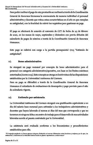 Manual de Percepciones del Personal Administrativo y Docente de la Universidad Autónoma