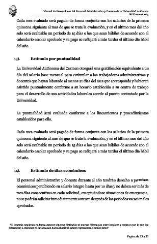 Manual de Percepciones del Personal Administrativo y Docente de la Universidad Autónoma