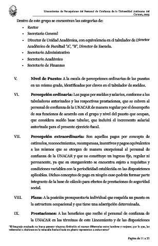 confianza de la UNACAR y que no constituye un ingreso fijo, regular ni