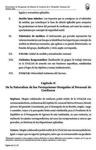 Octavo. Ningún colaborador podrá recibir de la UNACAR una remuneración bruta