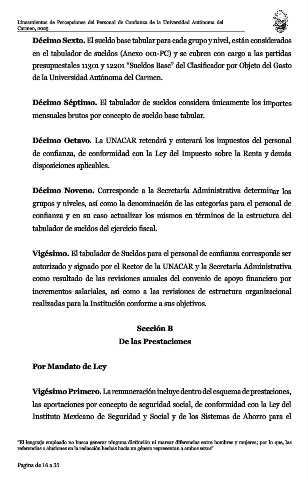 Décimo Séptimo. El tabulador de sueldos considera únicamente los importes