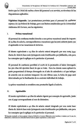 Vigésimo Segundo. Las prestaciones previstas para el personal de confianza