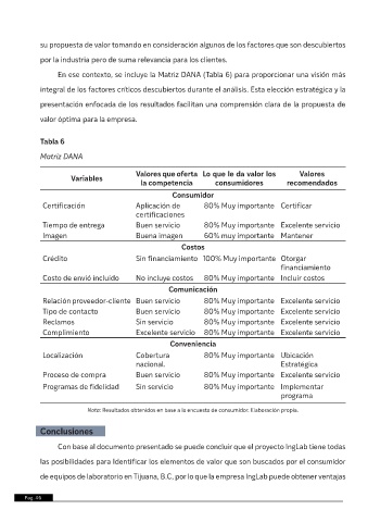 En ese contexto, se incluye la Matriz DANA (Tabla 6) para proporcionar una visión más