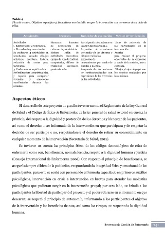 y espacio para compartir expresiones de las vivencias los ancianos.