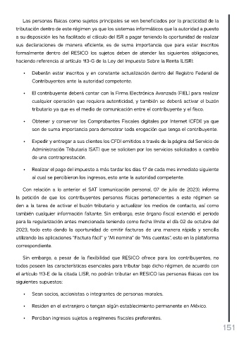 formalmente dentro del RESICO los sujetos deben de atender las siguientes obligaciones,