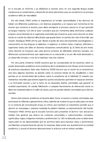 Por ello Staab, (1992) centra la importancia en brindar oportunidades a los alumnos de