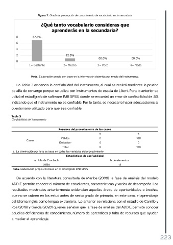 Figura 7. Grado de percepción de conocimiento de vocabulario en la secundaria