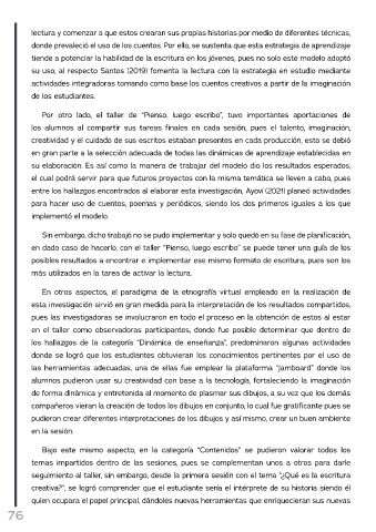 creativa?”, se logró comprender que el estudiante sería el intérprete de su historia siendo él