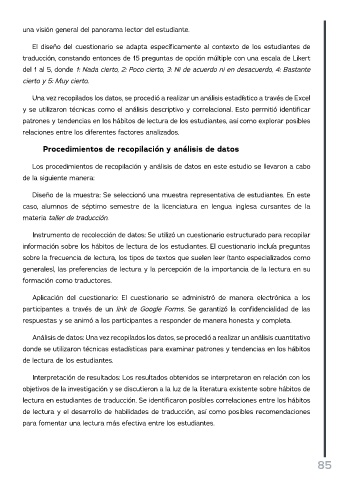 de lectura y el desarrollo de habilidades de traducción, así como posibles recomendaciones