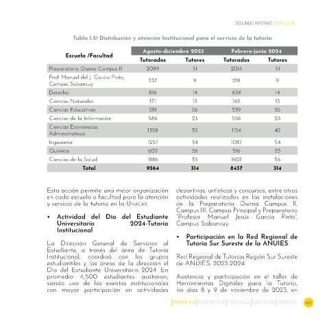 Tabla 1.51 Distribución y atención Institucional para el servicio de la tutoría