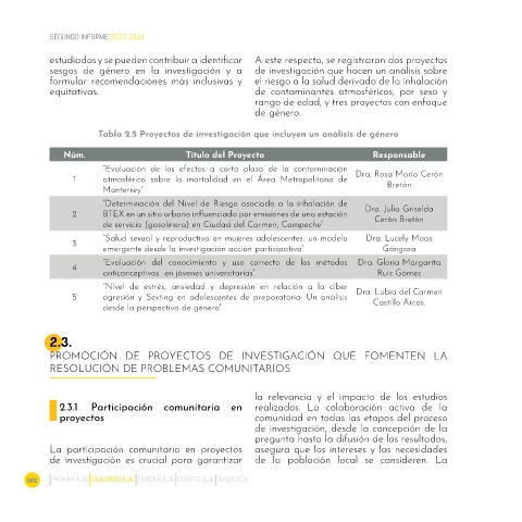 Tabla 2.5 Proyectos de investigación que incluyen un análisis de género