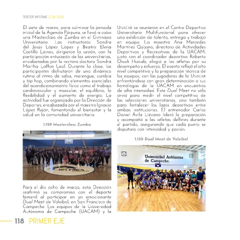 participación entusiasta de las universitarias, junto con el coordinador deportivo Roberto