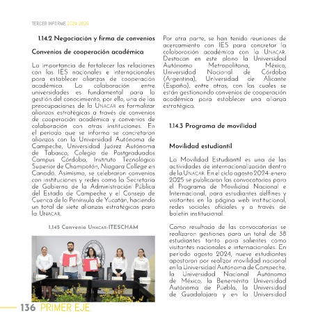 Canadá. Asimismo, se celebraron convenios de la Unacar. En el ciclo agosto 2024-enero