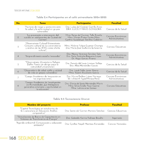 Tabla 2.4 Participantes en el café universitario 2024-2025