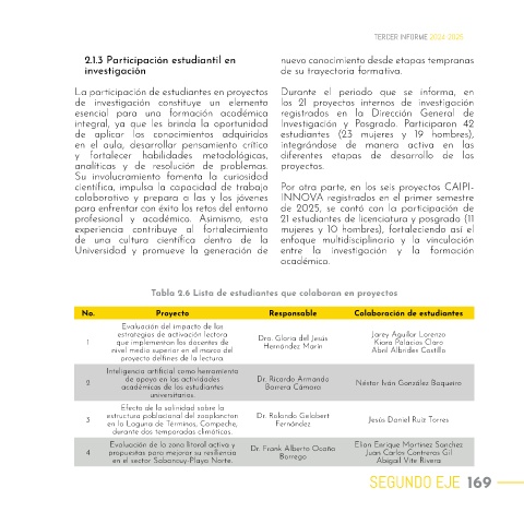 Tabla 2.6 Lista de estudiantes que colaboran en proyectos