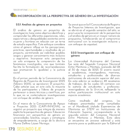 2.2.1 Análisis de género en proyectos Se prevé que en la II Convocatoria de Registro