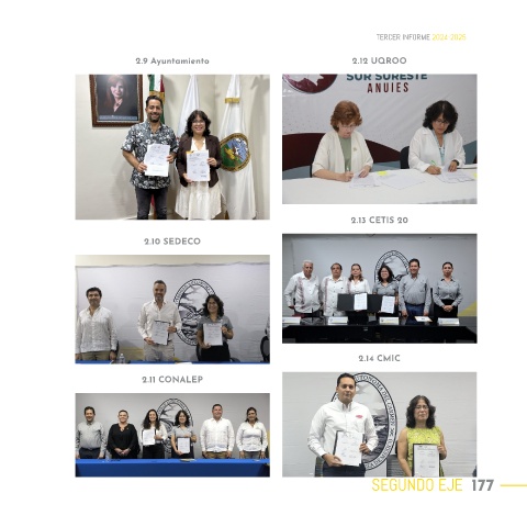 TERCER INFORME 2024-2025 2.9 Ayuntamiento 2.12 UQROO 2.13 CETIS 20 2.10 SEDECO 2.14 CMIC 2.11 CONALEP SEGUNDO EJE 177