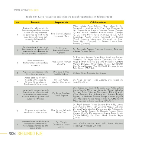 Tabla 2.14 Lista Proyectos con Impacto Social registrados en febrero 2025