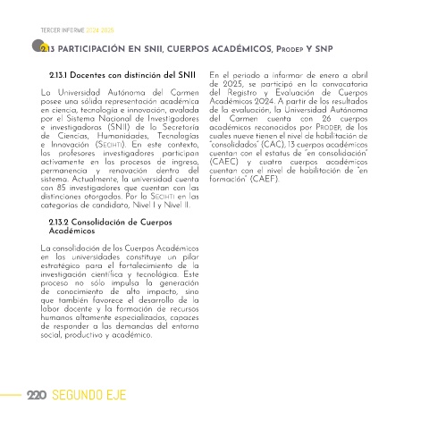 2.13 PARTICIPACIÓN EN SNII, CUERPOS ACADÉMICOS, Prodep Y SNP