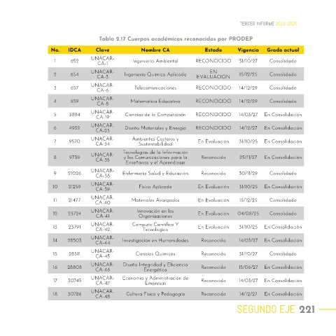 Tabla 2.17 Cuerpos académicos reconocidos por PRODEP