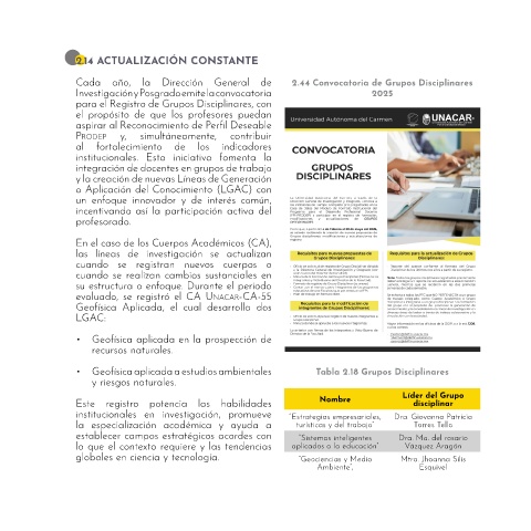 • Geofísica aplicada a estudios ambientales Tabla 2.18 Grupos Disciplinares
