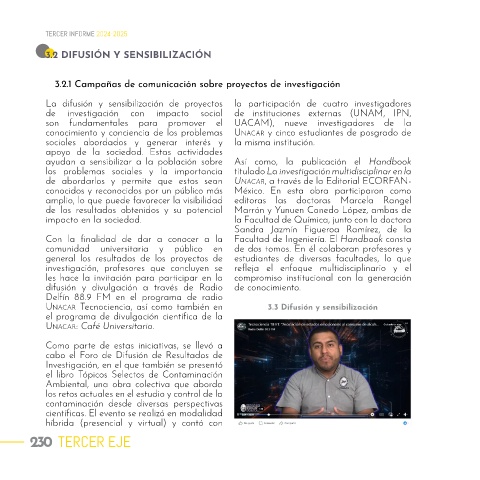 Unacar Tecnociencia, así como también en 3.3 Difusión y sensibilización