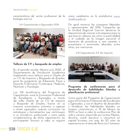 3.11 Capacitación a Egresados FCN De igual manera, las consejeras laborales