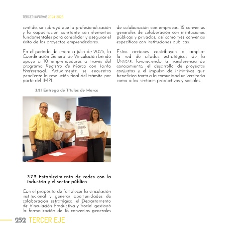 sentido, se subrayó que la profesionalización de colaboración con empresas, 15 convenios