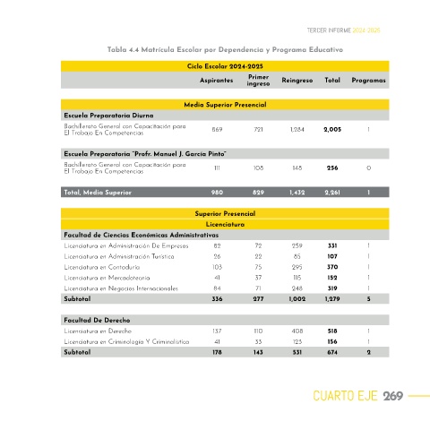 Tabla 4.4 Matrícula Escolar por Dependencia y Programa Educativo