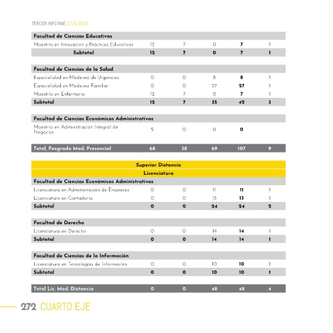 Total, Posgrado Mod. Presencial 68 38 69 107 9