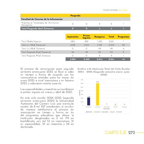 El proceso de reinscripción para segundo Gráfica 4.10. Matrícula Total del Ciclo Escolar